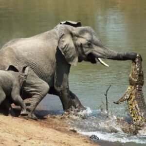 With his mother’s help, the newborn elephant made a fortuitous escape when a crocodile tried to bite off his trunk.. A crocodile emerged from the water and…